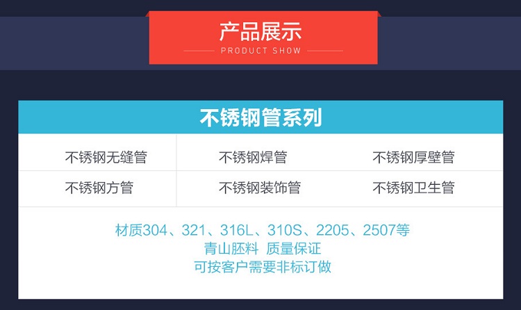 對(duì)于承受流體壓力的鋼管都要進(jìn)行液壓試驗(yàn)來(lái)檢驗(yàn)其耐壓能力和質(zhì)量,在規(guī)定的壓力下不發(fā)生泄漏、浸濕或膨脹為合格,有些鋼管還要根據(jù)標(biāo)準(zhǔn)或需方要求進(jìn)行卷邊試驗(yàn)、擴(kuò)口試驗(yàn)、壓扁試驗(yàn)。無(wú)縫不銹鋼管也稱不銹鋼無(wú)縫管,是用鋼錠或?qū)嵭墓芘鹘?jīng)穿孔制成毛管,然后經(jīng)熱軋、冷軋或冷撥制成。無(wú)縫鋼管的規(guī)格用外徑*壁厚毫米數(shù)表示。